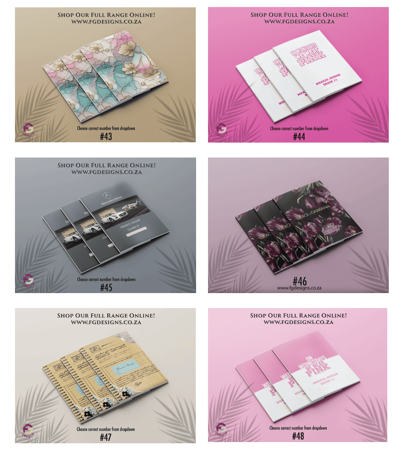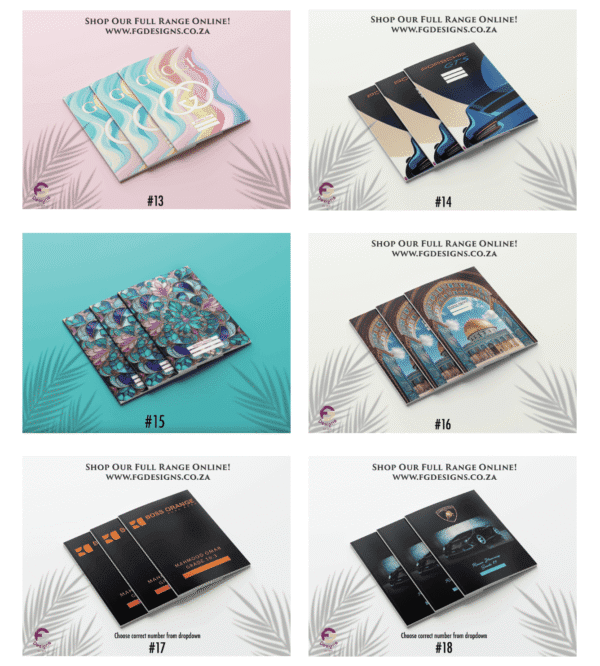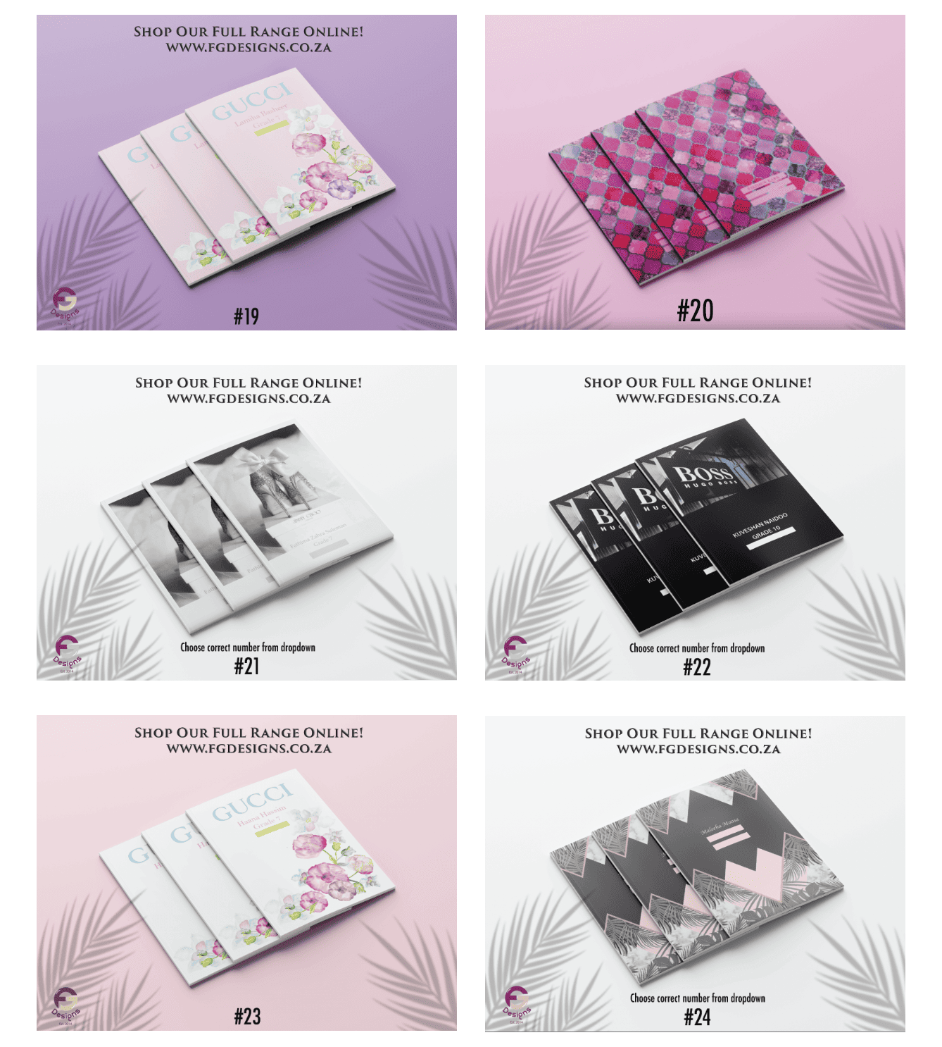 1 – Nissan, 2 Pastel Gucci (Light Blue), 3 Gucci Coffee, 4 Dolce & Gabbana, 5 Mustang Mountains, 6 Watermelon Design, 7 Glitter Swirls, 8 Ferrari Black and Red, 9 Ferrari (Red), 10 Soccer Ball (Flames), 11 Tiffany Blue Floral Garden, 12 Nike Blue Yellow Grey, 13 Gucci Multicolour, 14 Porsche GTS, 15 Teal Turqoise Stain Glass, 16 Dome of the Rock, 17 Boss Orange, 18 Lamborghini (Blue), 19 Gucci (Light Pink), 20 Pink Moroccan Pattern, 21 Jimmy Choo (Heels), 22 Hugo Boss, 23 Gucci Floral (White), 24 Tropical + Marble, 25 Kabah, 26 Dome of the Rock Starry Night, 27 All Star (Grey), 28 Cherry Bow, 29 Converse All Star, 30 Eiffel Tower (Crown), 31 Donut Worry, 32 All Star / Vans, 33 Palestine Flag Rose, 34 Pastel Glass Swirls, 35 Don't Stress, 36 You're Amazing, 37 Watermelon Hearts, 38 My Success is only by Allah, 39 Daily Dhikr, 40 Jimmy Choo (Hand Drawn), 41 On Wednesdays…, 42 You Got This, 43 Gold Flowers Pastel, 44 Mean Girls (Pink), 45 Mercedes + Plane, 46 Dolce & Gabbana Purple Floral, 47 Journal, 48 Mean Girls (Pink & White), 49 Life is Sweeter, 50 Love Pink, 51 Start with Bismillah, 52 Astronaut, 53 I Stand With Palestine, 54 Good Vibes, 55 ABC, 56 Marble, 57 Marble + Rose, 58 Enchanted Garden, 59 Gucci Butterfly, 60 Dolce & Gabbana Floral, 61 Adidas Marble, 62 Adidas Clouds, 63 Adidas Sky, 64 Marble Glitter, 65 Glitter Splatter, 66 Glitter White Marble Ombre, 67 Rose Gold Glitter Chevron, 68 Glitter Black Marble Ombre, 69 Glitter Ombre, 70 Racing Car, 71 Autumn Leaves, 72 Pastel Haram, 73 Wet Paint Pastel Flowers, 74 Floral Geometric, 75 Boss Handdrawn, 76 Hawaii Vibes, 77 Watercolour Flowers, 78 Blue & Gold Hexagons, 79 Direction Signs, 80 Carpe Diem, 81 Dubai Burj Khalifa, 82 Burj Khalifa Lights, 83 Burj Khalifa Multicolour, 84 Burj Khalifa Sky, 85 Burj Al Arab Multicolour, 86 Watercolour Maroon, 87 Bora Bora, 88 Inspiration, 89 Blue Flowers, 90 Glitter Leopard Print, 91 Glitter Flow, 92 Rose Gold Floral Pattern, 93 Floral Heel, 94 Sea & Flowers, 95 Watercolour Eiffel Tower, 96 Pink + Purple Eiffel Tower, 97 Eiffel + Bow, 98 Pink Damask, 99 Shells & Oysters, 100 Houndstooth, 101 Successful Woman, 102 Gucci Blue Floral, 103 Blue Flowers, 104 Blue and Cream Circles, 105 Mint + Marble, 106 LV Stripes, 107 Pretty Flowers, 108 The Right Side, 109 Spaceships, 110 Gucci Pink & Yellow, 111 BMW Driving Pleasure, 112 Cars & Trucks, 113 Gucci Floral, 114 LV Inspired Grey/White Stripes, 115 Marble/Rose Gold/Pink, 116 Hot Wheels, 117 Rainbow Glitter Stripes, 118 Blue VW, 119 Parked Cars, 120 Marble/Grey, 121 Floral/Pink, 122 Gucci Black, 123 Hand Drawn Gucci, 124 Loewe Stripes, 125 Lamborghini/Yellow, 126 Porsche Carrera, 127 Blue Swirls, 128 Black/Grey Marble/Pink, 129 BMW Motorrad, 130 Stars, 131 SubhanAllah Alhamdulillah AllahuAkbar, 132 Stripes/Pink, 133 Toy Story, 134 Paw Patrol, 135 Pink Aztec Pattern, 136 Harry Potter 9 3/4, 137 Gryffindor, 138 Floral Garden, 139 The Muggle Struggle, 140 Slytherin, 141 Hogwarts, 142 Burn Book, 143 Friends (Black), 144 Friends (White), 145 Watermelon, 146 Aston Martin, 147 Colourful Doodles, 148 Watercolour Flowers, 149 Thank u Next, 150 Pastel Scales, 151 Pastel Dunes, 152 Grid Lines, 153 Pink Flowers, 154 Glitter Leopard Print, 155 Turq/Brown Swirl, 156 Glitter Waves, 157 Henna Designs, 158 Monochrome Stars, 159 Pastel Stripes & Hearts, 160 Pastel Stripes & Circles, 161 Chelsea Football Club, 162 Chelsea KTBFFH, 163 Pastel Marble, 164 Green Leather, 165 Brown Leather, 166 Leopard Print Glitter, 167 Spiderman, 168 Hustle, 169 Chloe, 170 Galaxy, 171 Spiderman, 172 City Silhouettes, 173 Handpainted Flowers, 174 Light Pink Tulips, 175 Powder Painting, 176 Watercolour Floral Painting, 177 Yellow Lamborghini, 178 BMW Racing, 179 BMW M2, 180 Superheroes, 181 DBZ, 182 M3, 183 I'd Rather Be Playing Padel, 184 Gucci Butterfly Floral, 185 Purple Flowers, 186 Pink Flowers, 187 Pastel Flowers, 188 Turquoise, 189 Sea and Sand, 190 Flowers & Polka Dots, 191 Pastel Space, 192 Flowers and Stripes, 193 Vintage Flowers, 194 Rolls Royce, 195 Gucci Butterfly, 196 Gucci Tulips, 197 Flowers & Gems, 198 Maroon & Green Flowers, 199 Green Squares, 200 Nike Paint