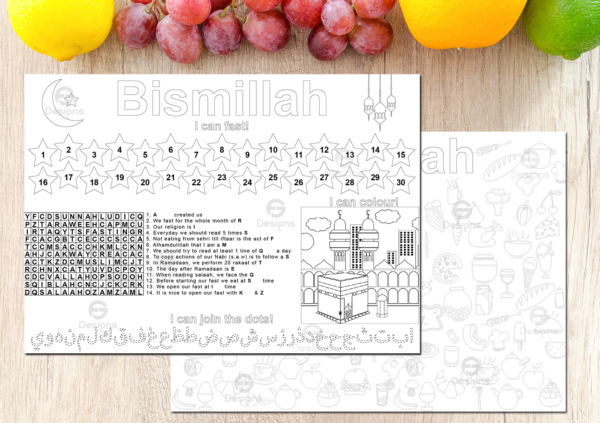 PM11 Floral Moon, Bismillah Colouring, PM1 Floral Ring, PM12 Blush Pink Leaves, PM2 Dusty Pink, PM13 Royal Blue Marble, PM3 Midnight Blue, PM14 Pink & Gold Marble, PM4 Tropical, PM15 Black & Grey Marble, PM5 Turkish, PM16 Blue & Gold Stripes, PM6 Black & Gold, PM17 Gold Glitter Blue Grey, PM7 Peach Floral, PM18 Brown With Pink Tulips, PM8 Multi Colour Moon, PM19 Blue With Floral Border, PM9 Colour Flags, PM20 Ornamental Border, PM10 Moon & Stars, Bismillah Activities